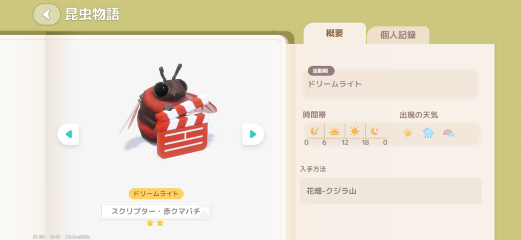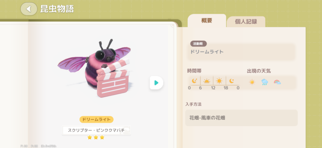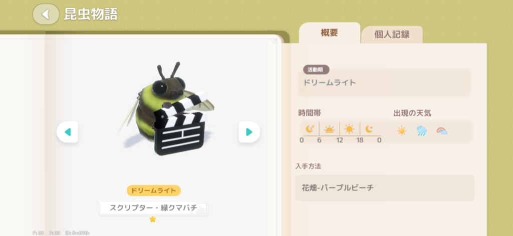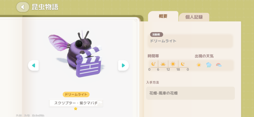 すべて花畑エリアで捕まえることができ、音を聞きながらプレイすると見つけやすいです