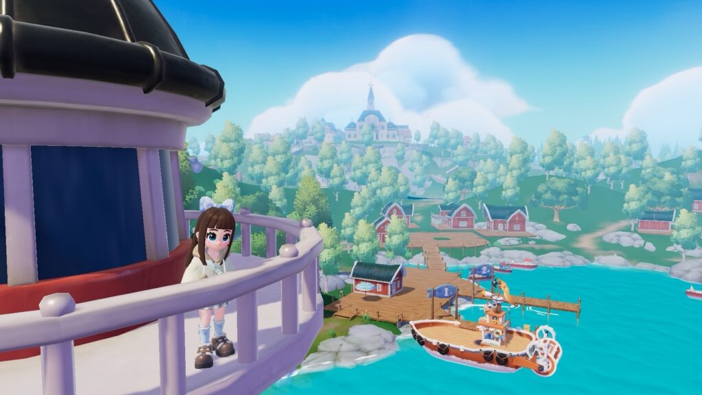 灯台の上はかなり高い位置にあり、そこからは漁村エリア全体を見渡すことができます