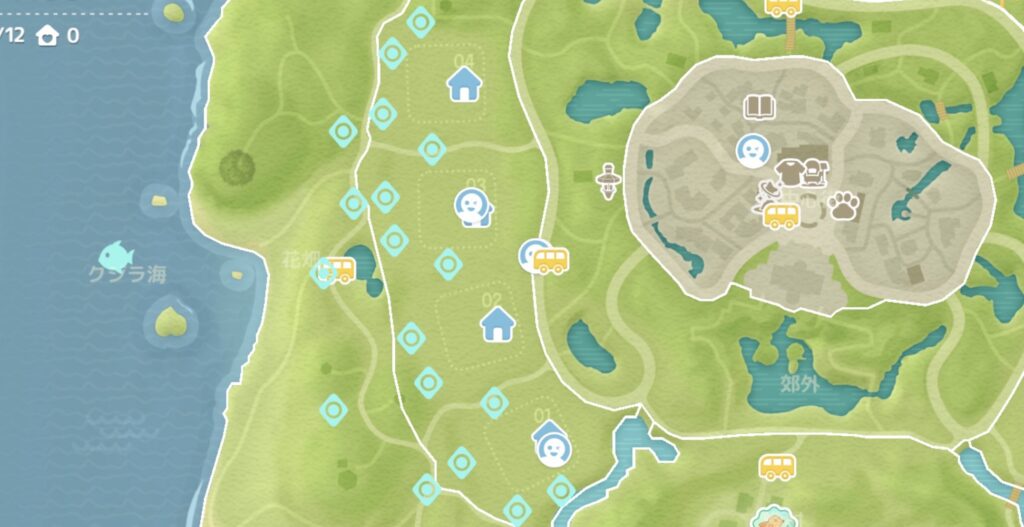 マップ上では、花畑横の道沿いに生えていることが多く、歩くだけでも見つけやすい印象です