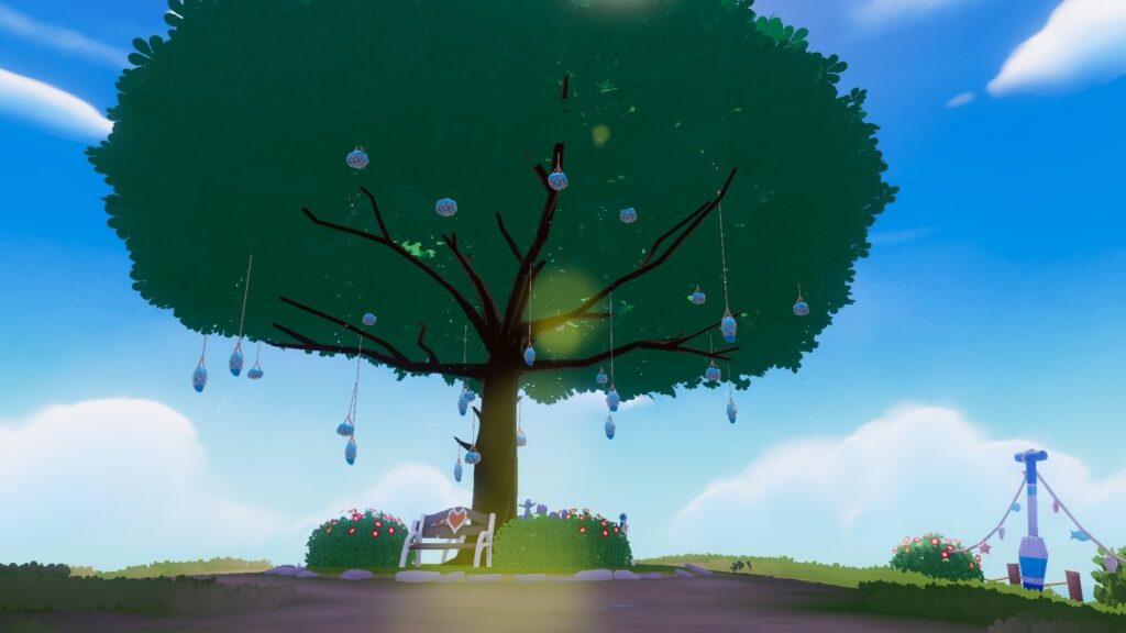 クジラ山の頂上には大きな木が生えており、このエリアは素材集めというよりも、景色を楽しんだり、立ち寄って雰囲気を味わうのがメインの場所という印象です